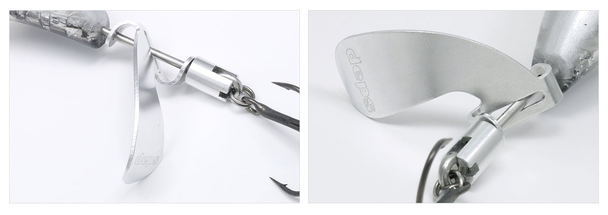 The Evoke Zero 120 is an other great surface search tool by Deps. With it's high-strength duralumin single prop it creates an unbalanced eccentric motion, shaking the body and releasing waves, as well as the clapping sound of the single propeller hitting the water surface as it swings up and down, and the powerful squealing sound of the propeller rubbing against the collar and shaft, all of which reverberate loudly through the water. It is sure to get the attention of plenty of cod, toga and ox bass this session.